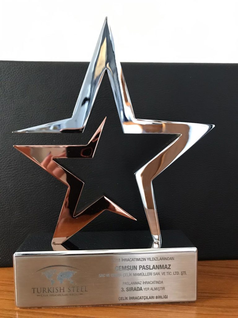 Our company has awarded the 3rd place in the ranking of Stainless Steel Exports in 2018 by the Turkey Steel Exporters Association.